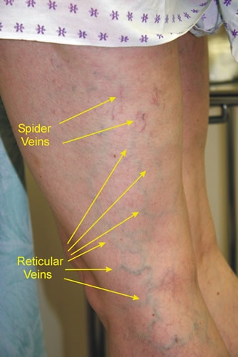 Las arañas vasculares o telangiectasias, y las variculas son pequeñas varices superficiales que aparecen en los primeros estadios de la insuficiencia venosa cronica. Estadio CEAP 1