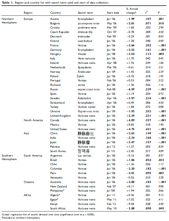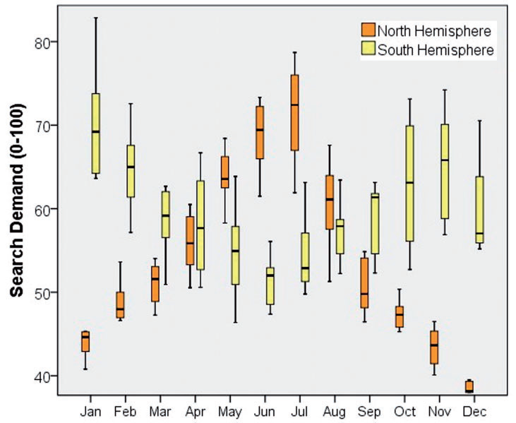 Evolución búsqueda información sobre varices en Google segun estacion del año