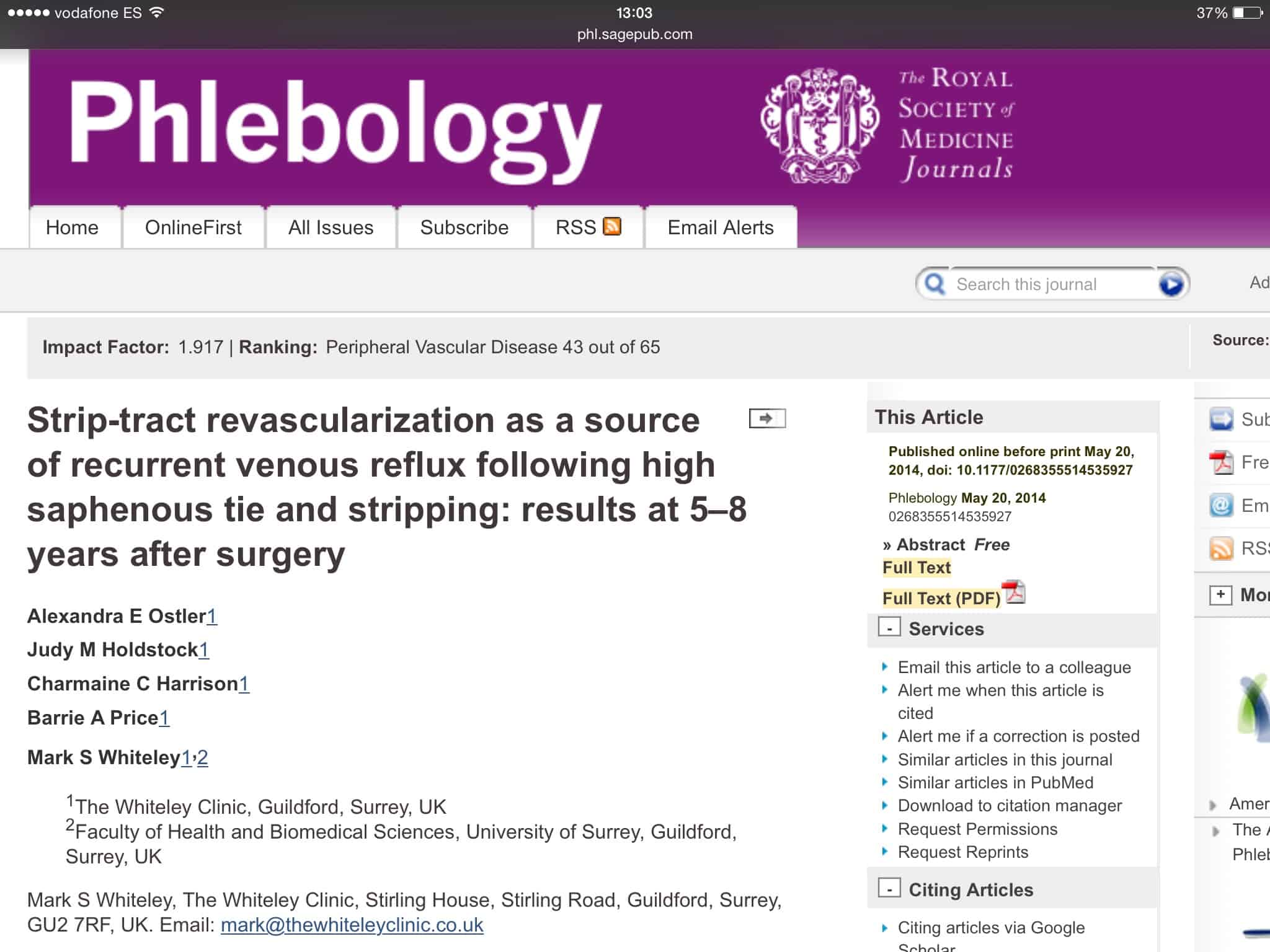 El grupo de Mark Whiteley a publicado recientemente que el tratamiento de varices mediante cirugia favorece la reaparicion de varices